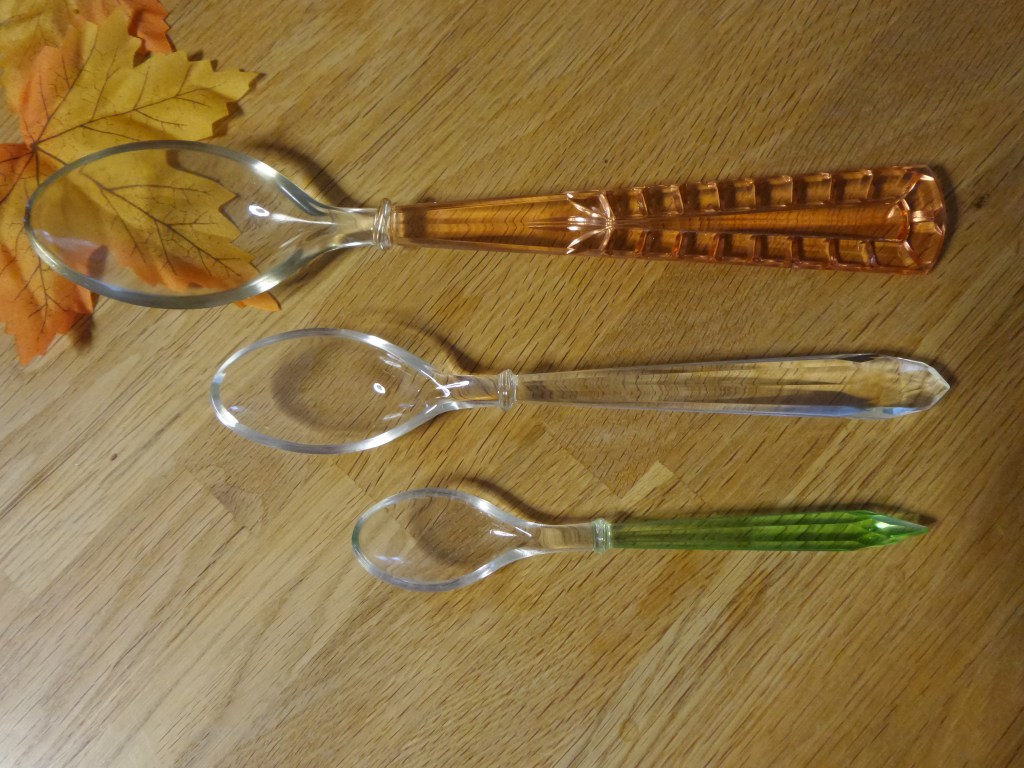 Vandaag een paar andere glazen lepels. een grote en twee andere van verschillende formaten. Zelf vind ik glazen bestek prachtig. Maar of het wel zo praktisch is in het gebruik?