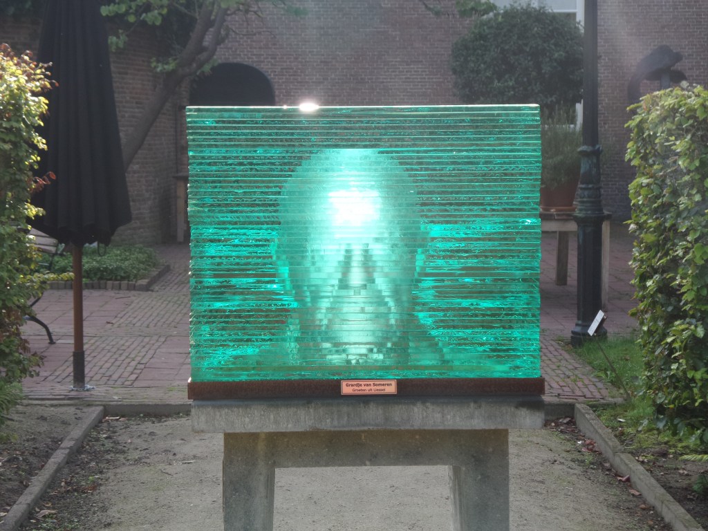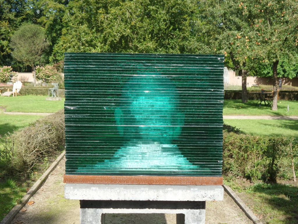 We zijn een aantal dagen de hort op geweest en dan duurt het even voor ik weer tijd heb om wat te plaatsen. Tijdens een fietstocht kwamen we langs de Havixhorst waar een mooie beeldentuin is. Vooral beelden van brons waren er te zien. Maar ik stuitte ook op een mooi glaskunstwerk dat ik hier met jullie wil delen. Het is gemaakt uit vele lagen glas en dat maakt het best intrigerend.
