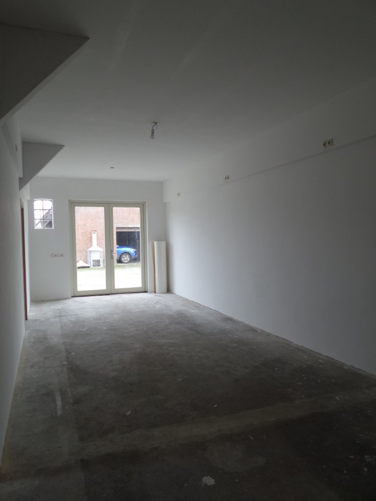 Langzamerhand vordert de verbouwing steeds meer. Hier is nog te zien dat de oude deur erin zit. Maar inmiddels zitten de nieuwe deuren erin en is alles ook al gestuukt.