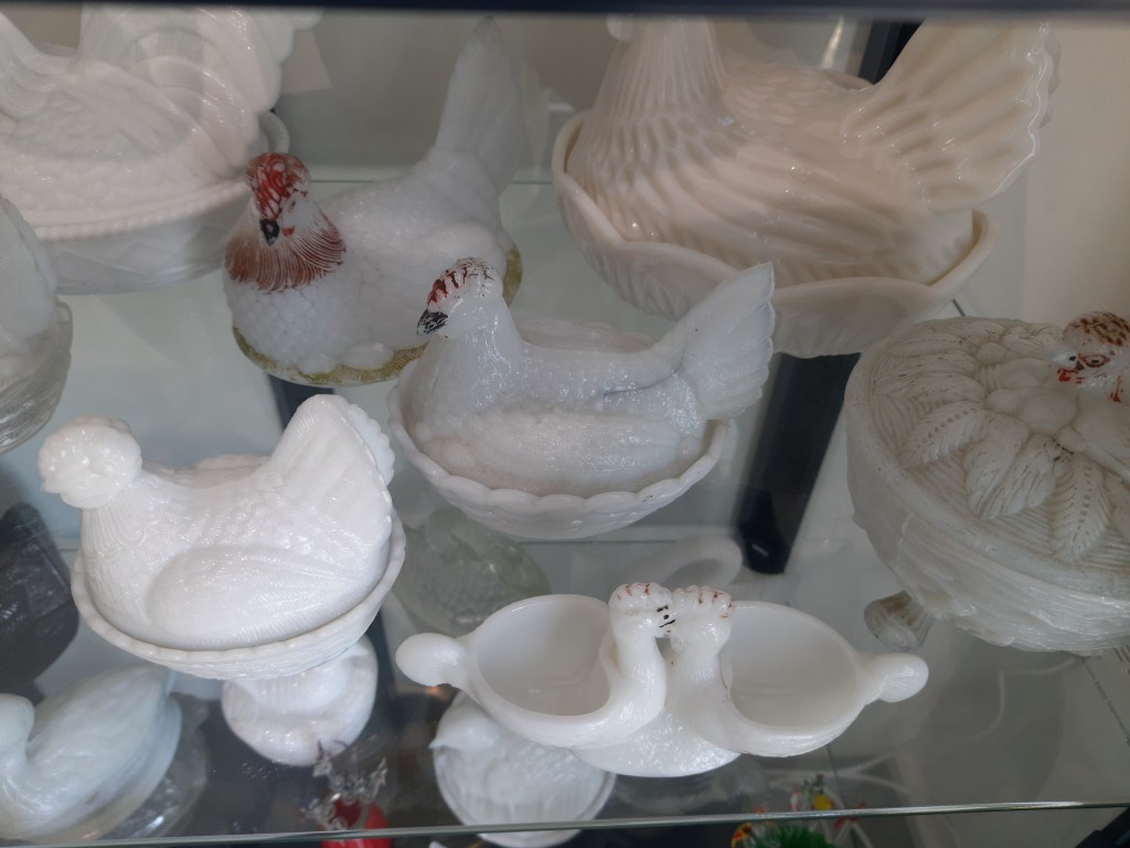Meer dan 30 jaar geleden begonnen met het verzamelen van roze persglas en in de loop van de jaren is deze verzameling uitgebreid met alle kleuren glas gemaakt in Europa en Amerika.