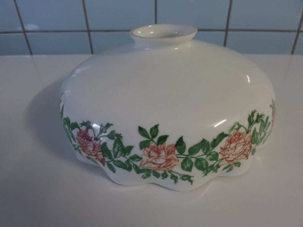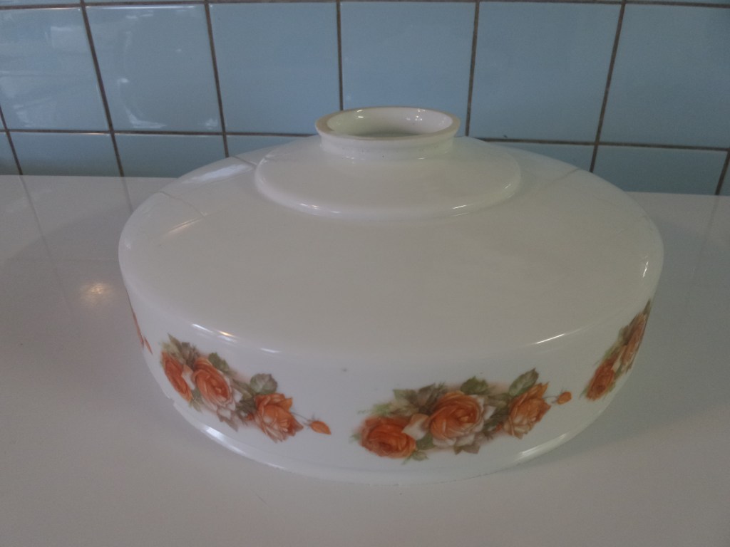 Lampenkappen zijn er in vele vormen en maten. Hieronder nog twee exemplaren die ik heb. Kleiner en met meer geschulpte randen. De kleinere formaten hingen veelal in de keuken.
