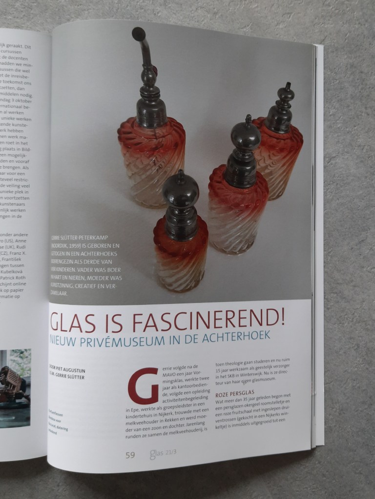 Prachtig uitgevoerd en mooi om te lezen. In Gerrie’s Glasmuseum ligt een inkijk exemplaar om het hele artikel (en andere mooie artikelen in het tijdschrift) door te lezen!