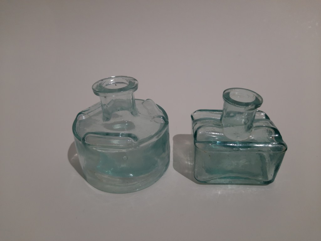 Twee prachtig blauwe antieke inktpotjes staan nu bij mij en bij haar in de kast. Dat schept een band!