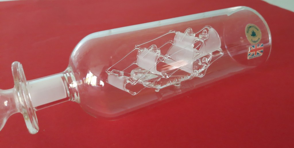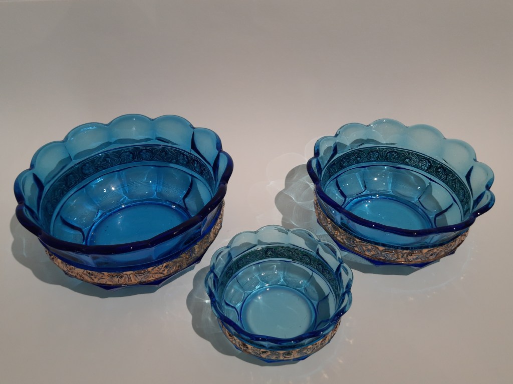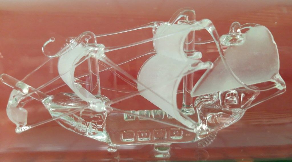 De nieuwe tentoonstelling is opgedragen aan Ivo Haanstra, iemand die met hart en ziel glas verzameld heeft. Via zijn familie en partner kwam zijn verzameling op mijn pad. In de blauwe tentoonstelling had ik al een kast ingericht met kabalt blauw glas uit zijn verzameling, deze is ook nu te zien. In de kast veel Blue Henri sputumflesjes. Ivo heeft onderzoek gedaan naar deze flesjes en daarover een boek geschreven. Dit boek ligt bij de Blue Henri’s in de vitrinekast. Maar alle andere vitrinekasten (en er boven op), zijn gevuld met glaswerk uit zijn verzameling. Zowel persglas als geblazen glas, zowel bijzonder als over de top. Maar stuk voor stuk andere dingen dan glaswerk uit mijn eigen verzameling. Daarom verdient deze tentoonstelling ook de titel Ode aan Ivo.