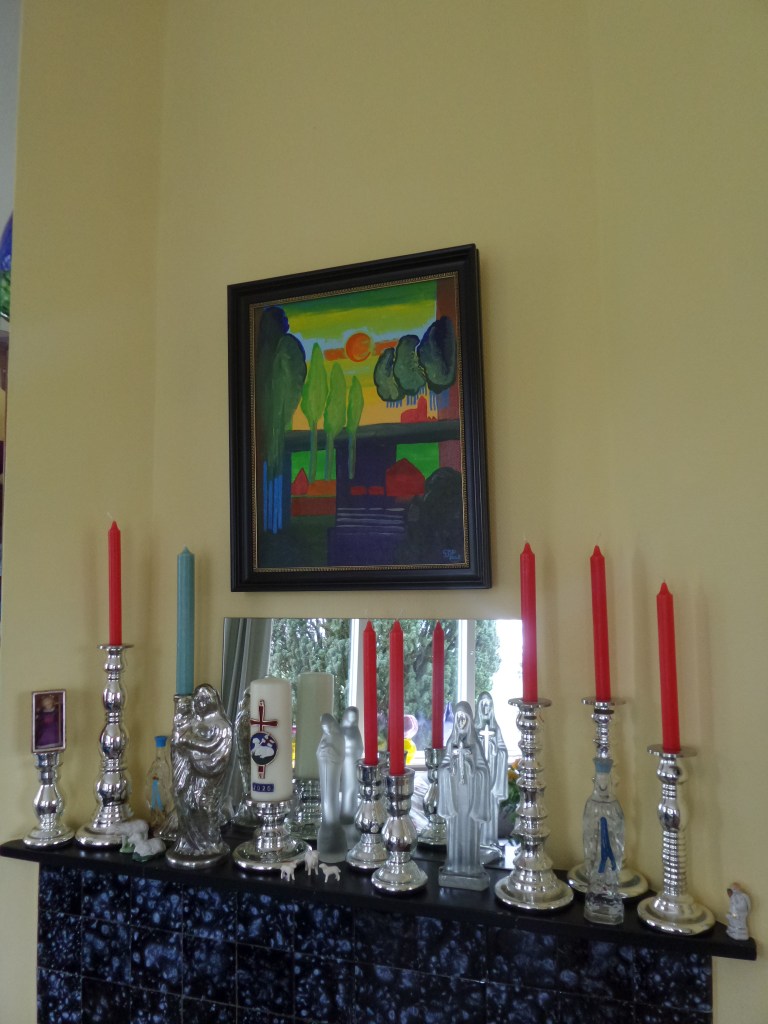 Dit paste precies in haar en ons schema. Zodat we op onze aanreisdag haar glasmuseum hebben bezocht. Nou ik mag veel glaswerk hebben (rond de 10.000 stuks), maar wat ik daar zag is de overtreffende trap en overweldigend. Ook is ze later alle kleuren van de regenboog gaan verzamelen. Haar doel is vooral om onderzoek te doen naar de herkomst van het glas. AZe heeft dan ook veel op glasfabriek gesorteerd staan. Maar er blijft ook veel over wat niet te traceren is. Ze vertelde ook dat het heel moeilijk is om aan oude catalogi te komen omdat het vroeger de gewoonte was om pas weer een nieuwe catalogus mee te geven als de oude werd ingeleverd, de oude werden dan vernietigd.