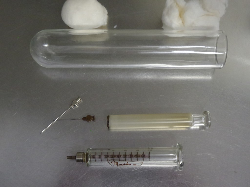 Ook bracht ze een melkmonsterflesje mee die van een kerk komt…waar de pastoor dat ooit voor gebruikt heeft…ik opperde al dat de pastoor vroeger zijn eigen melkkoe heeft gehad….