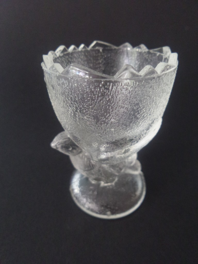 Mijn vakantie was anders dan anders. Maar daardoor heb ik wel veel kringlopen bezocht. Zo was ik naar museum Lalique in Doesburg geweest en op één of andere manier kan ik de weg terug naar huis nooit goed vinden en kwam daardoor in Zutphen uit. Wel aan de goede kant van Zutphen. Voor mij is dat de kant waar de kringloop zich bevind. Dus gelijk die maar bezocht. Hier kocht ik bovenstaand eierdopje. Zegge en schrijve voor € 0,25 Een koopje voor een hoogbejaard eierdopje.