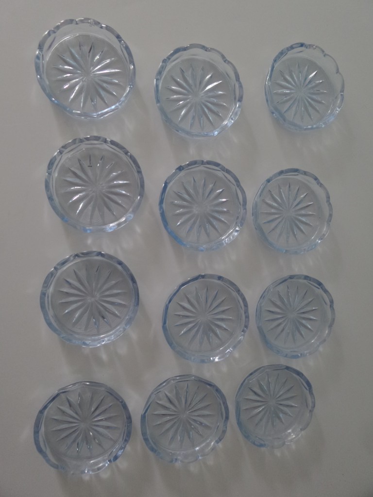 Ik heb al vaker onderzetters laten zien in mijn blog. Deze kwamen onlangs op mijn pad. Een complete doos vol met 12 dezelfde in een lichtblauwe kleur. Ik heb denk ik wel drie maal langs de doos gelopen voordat ik door had dat de onderzetters lichtblauw zijn. Op bovenstaande foto is de kleur prima te zien. Maar wanneer het daglicht er vol op schijnt is het erg moeilijk te constateren.