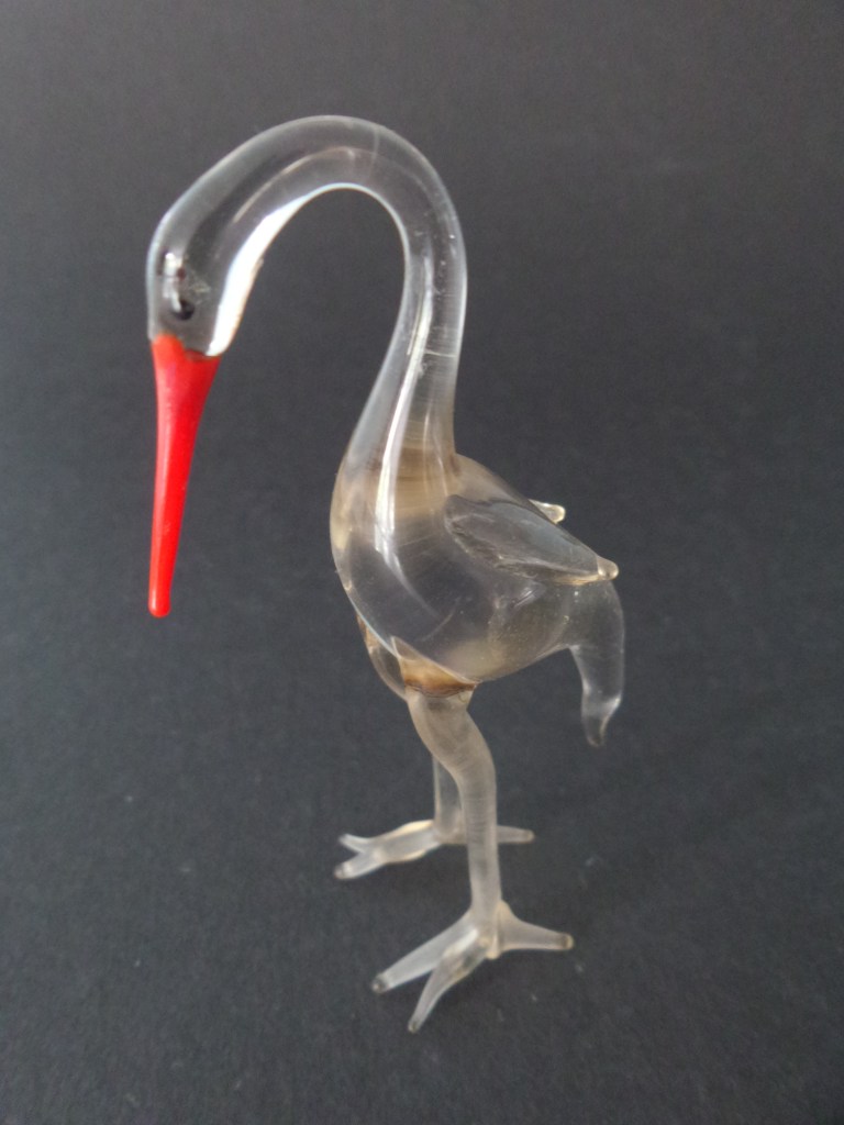 Maar kristal is niet mijn ding en ik heb alles bekeken. Mooi voor iemand die van kleine kristallen figuren houdt. Maar één van de laatste dingen die erbij gezet werden was dit Ooievaarsgezin. Ooit gemaakt van geblazen glas. Aan de kleur van het glas is wel te zien dat het wat ouder is en het is helemaal heel. Maar super fragiel. Voor 2 euro staan ze bij mij in de vitrinekast te pronken. Kijk mee en geniet!