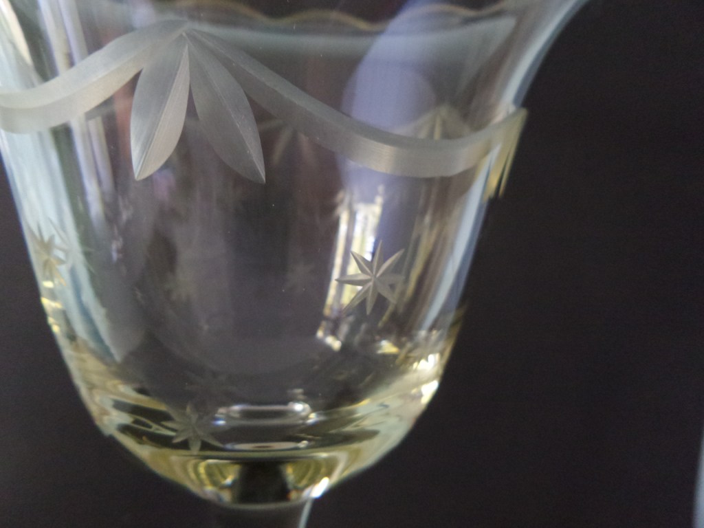 Van mijn vriendin kreeg ik afgelopen week een mooie bokaal met een geslepen guirlande en sterren. Het heeft een prachtige gegolfde rand en staat hoog op een poot. Zo sierlijk. Niet alle geslepen glas is super oud. Ik heb het vermoeden dat deze bokaal dat ook niet is. Maar wel erg mooi om ergens te pronk te staan.