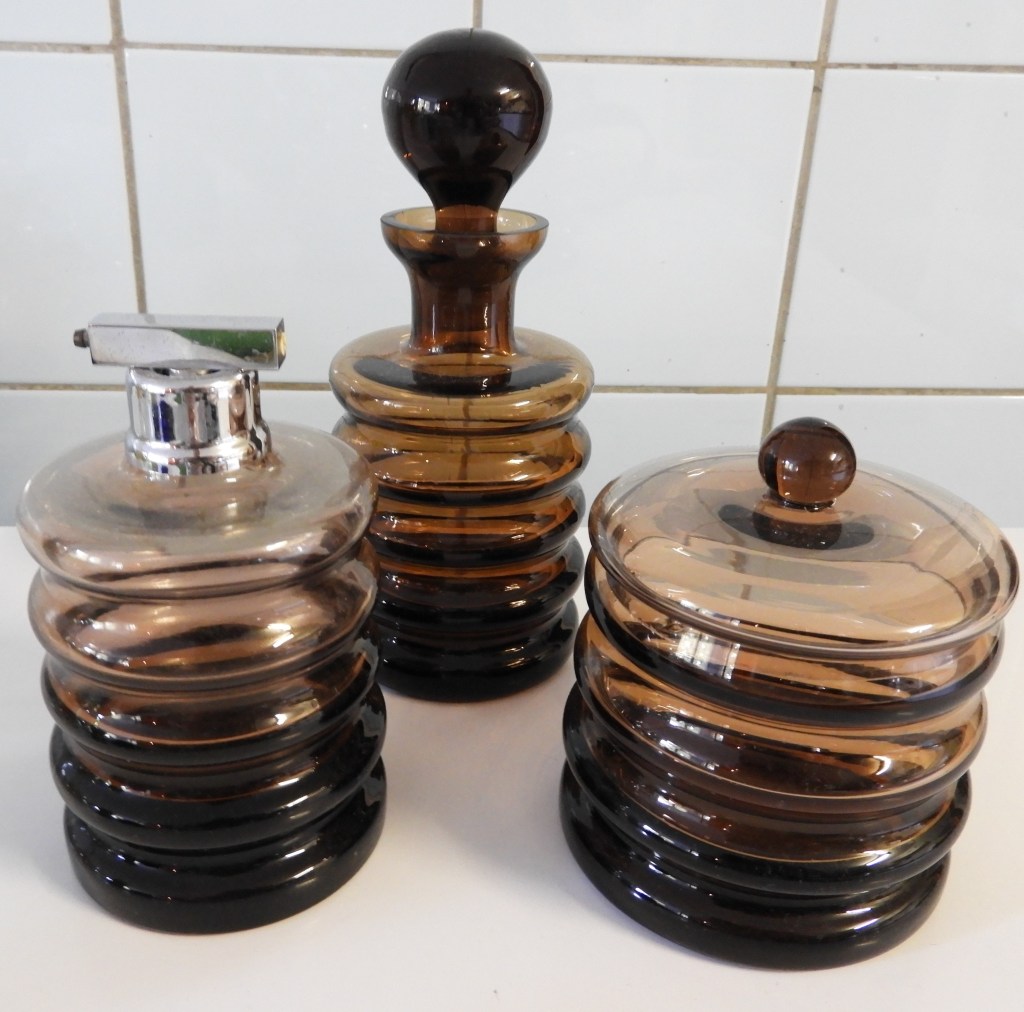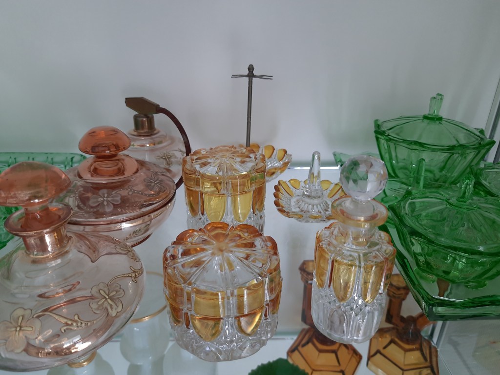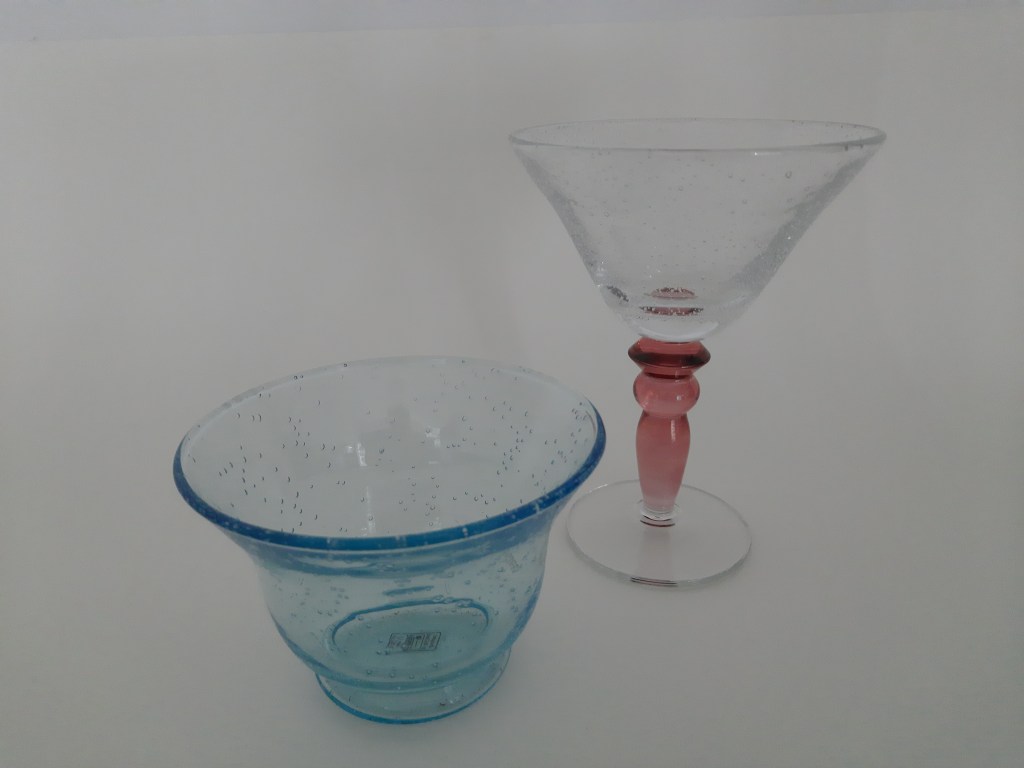 De nieuwe tentoonstelling is opgedragen aan Ivo Haanstra, iemand die met hart en ziel glas verzameld heeft. Via zijn familie en partner kwam zijn verzameling op mijn pad. In de blauwe tentoonstelling had ik al een kast ingericht met kabalt blauw glas uit zijn verzameling, deze is ook nu te zien. In de kast veel Blue Henri sputumflesjes. Ivo heeft onderzoek gedaan naar deze flesjes en daarover een boek geschreven. Dit boek ligt bij de Blue Henri’s in de vitrinekast. Maar alle andere vitrinekasten (en er boven op), zijn gevuld met glaswerk uit zijn verzameling. Zowel persglas als geblazen glas, zowel bijzonder als over de top. Maar stuk voor stuk andere dingen dan glaswerk uit mijn eigen verzameling. Daarom verdient deze tentoonstelling ook de titel Ode aan Ivo.