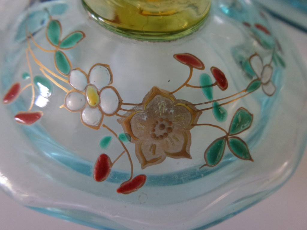 Het onderste deel van het glas heeft een mooi beschilderde rand met lieve bloemetjes. Hele doosje is niet veel groter dan een pillendoosje of pepermuntdoosje. Het is het schatje uit mijn glazen doosjes verzameling.