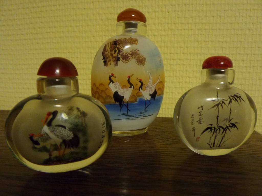Toen wij een aantal jaren terug op vakantie in China waren kwamen we deze flesjes dan ook regelmatig tegen. Ze zijn aan de binnenkant met de hand beschilderd met zeer fijne penseeltjes.