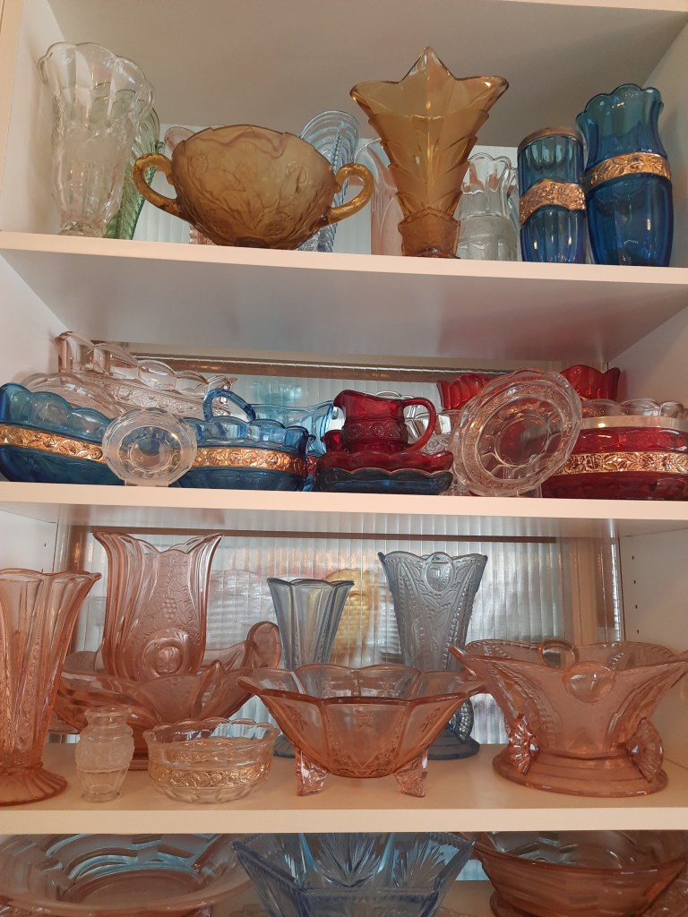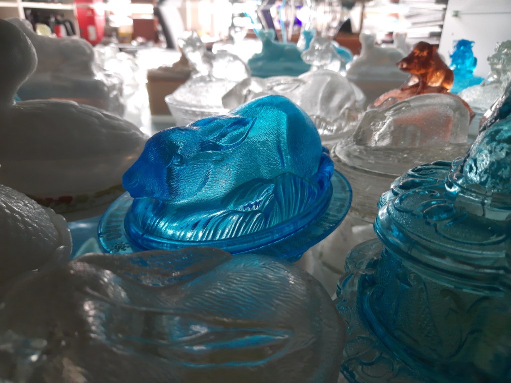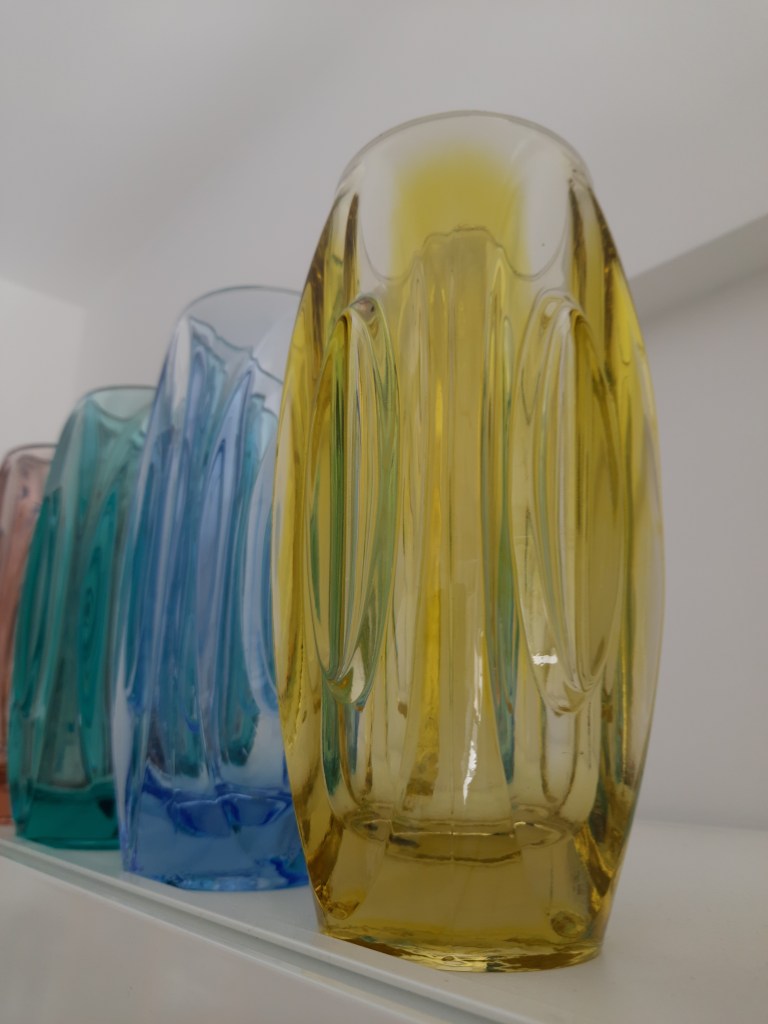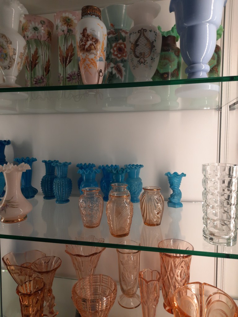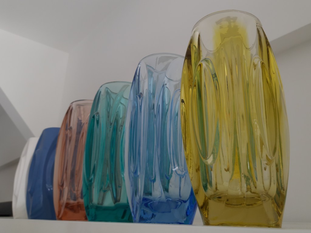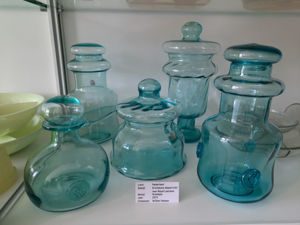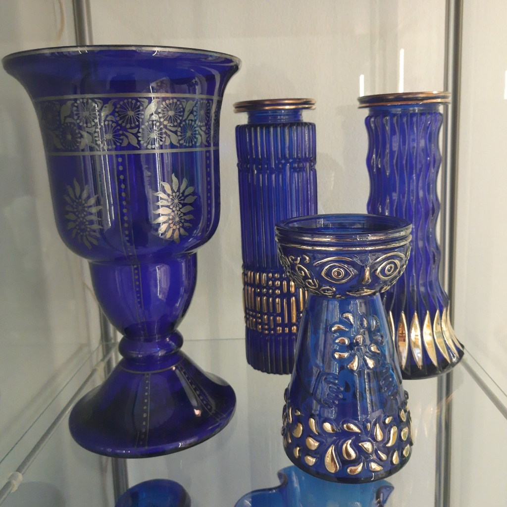 Momenteel is de blauw glas tentoonstelling nog te zien. Inmiddels is één vitrinekast al ingericht met blauw glas uit de verzameling van Ivo Haanstra. Hij was een fervent glasverzamelaar en heeft veel bijzondere objecten verzameld. Helaas is hij in maart overleden en via/via kwam zijn glasverzameling op mijn pad. Vandaar dat ik al de mogelijkheid had om één kast te vullen. Maar om helemaal recht te doen aan zijn verzameling zit ik nu middenin de voorbereiding voor een grote tentoonstelling van zijn verzameling. Deze tentoonstelling start half oktober. Daarin zal o.a. dit blauwe glaswerk ook nog te zien zijn. Maar ook heel veel ander, mooi en divers glaswerk. Enkele impressies volgen hieronder.