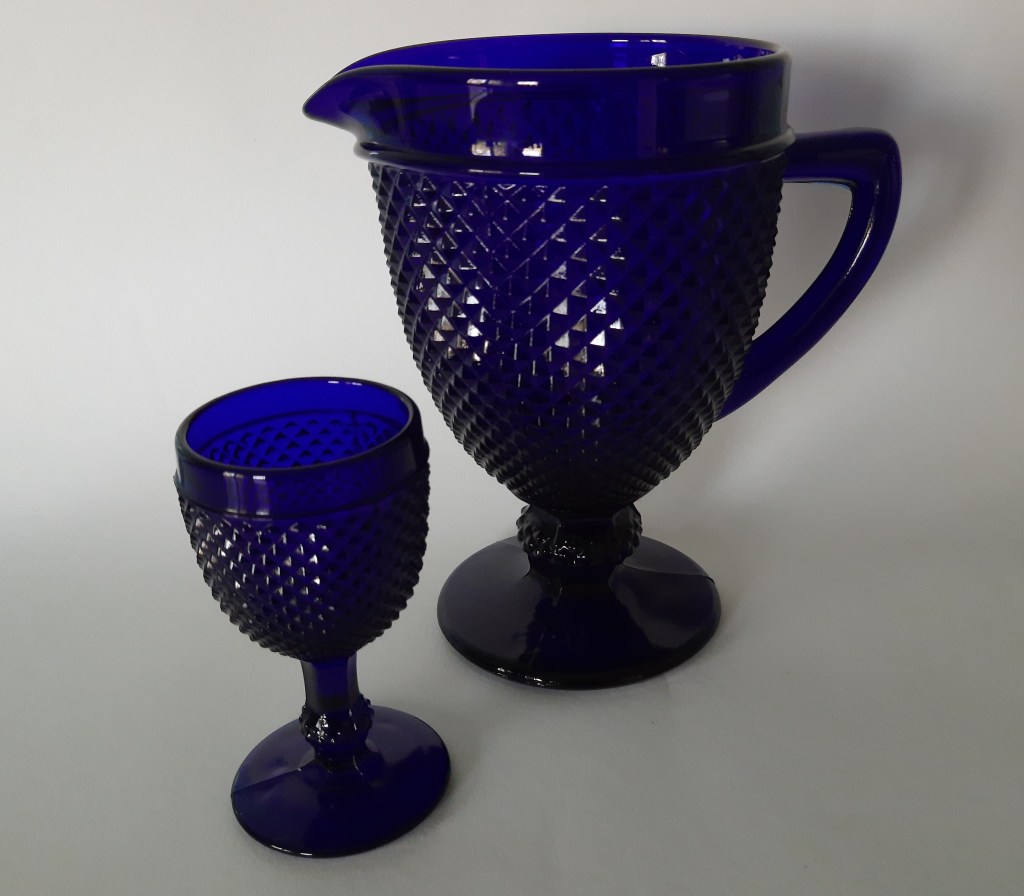 Dit is glaswerk waardoor ik ooit roze glas ben gaan verzamelen. Mooi persglas met prachtige motieven. Maar dan in de prachtigste kleur blauw. Barolac modelnummer 164. Glasfabriek Josef Inwald, Bohemen, ontworpen tussen 1948-1952.