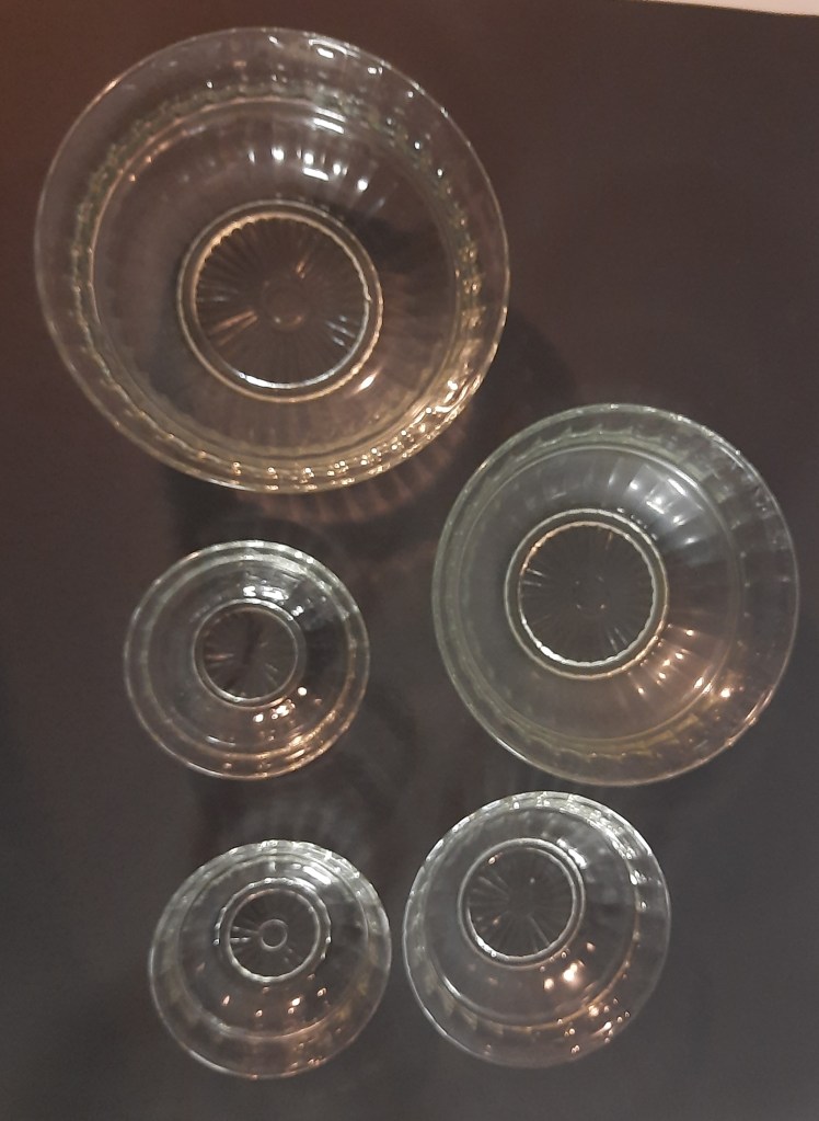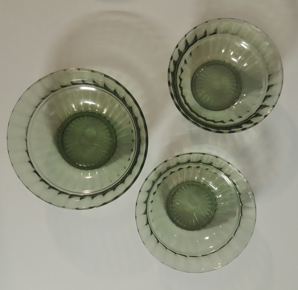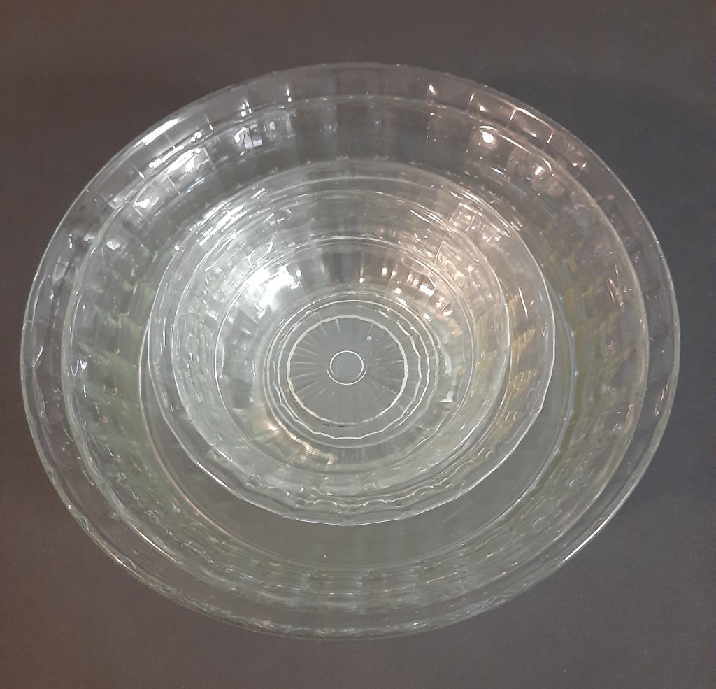 Hollandia Leerdam Nest schalen € 12,50 De kleinste twee zijn van hetzelfde formaat, de één na grooste is wat dof aan de binnenkant.